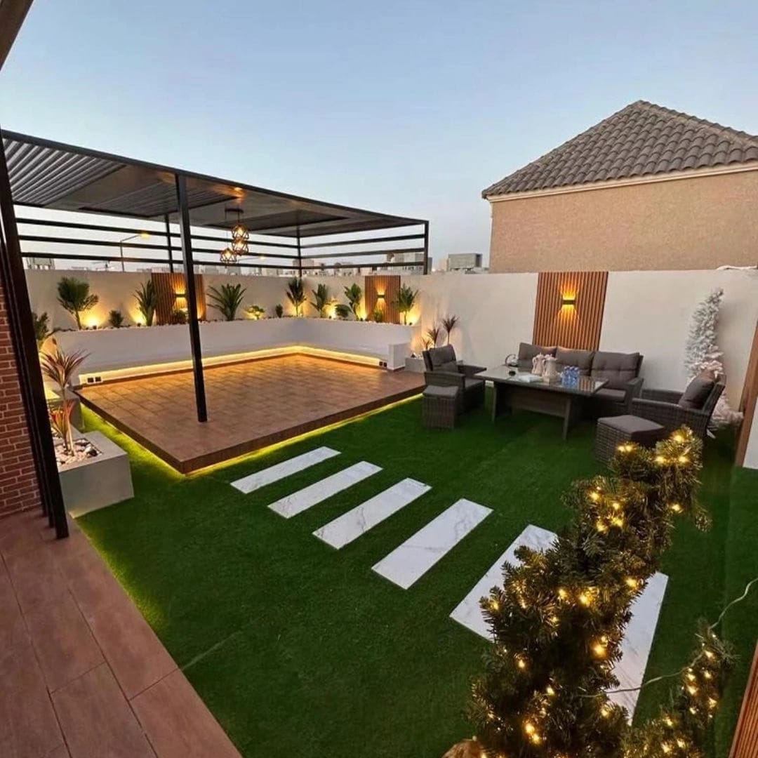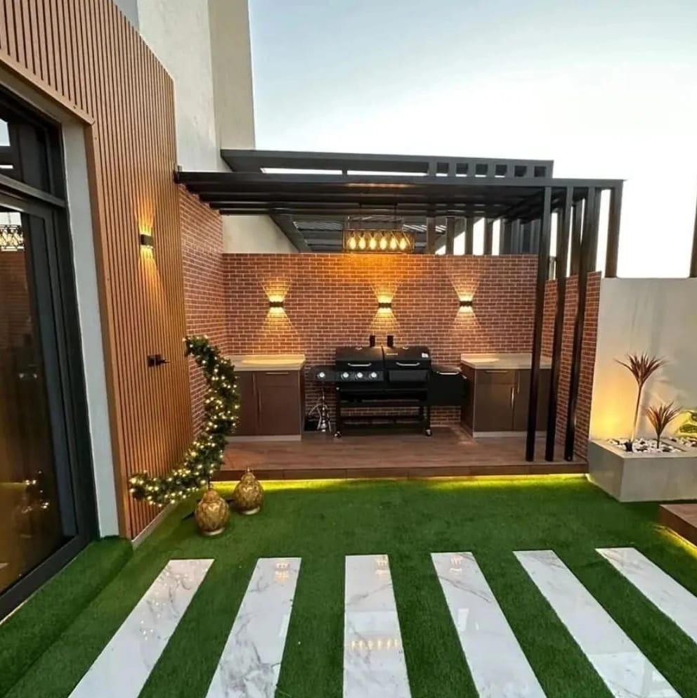 متخصصون تنسيق الحدائق المنزلية وبيع وتركيب العشب الصناعي والعشب الطبيعي والمظلات والشلالات والنوافير